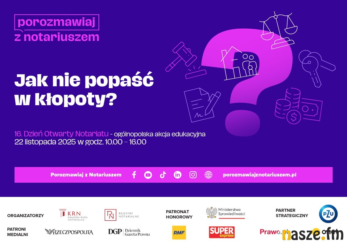 W tym roku akcja odbywa się pod hasłem "Jak nie popaść w kłopoty? Porozmawiaj o tym z notariuszem". W 54 miejscach w całej Polsce, będzie można skonsultować się z notariuszem, a także porozmawiać telefonicznie i online oraz poprzez kanały w social mediach.