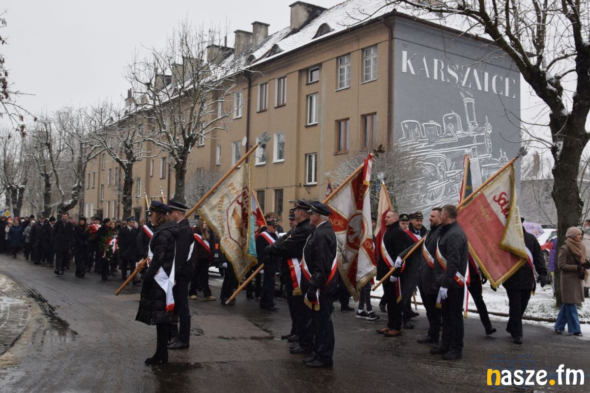 Po mszy uczestnicy uroczystości przemaszerowali na plac Zwycięstwa, gdzie delegacje złożyły kwiaty przed pomnikiem Kazimierza Kałużewskiego i Juliusza Sylli, bohaterskich kolejarzy - żołnierzy Armii Krajowej zamordowanych w czasie II wojny światowej.