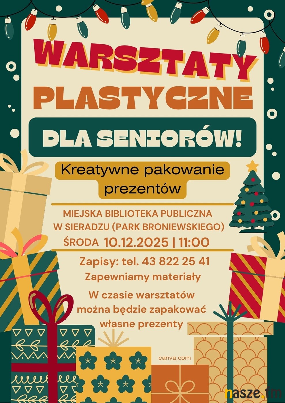 Dzieci mogą w tym tygodniu wybrać się na zajęcia do pracowni Sieradzkiego Centrum Kultury, z kolei seniorów zaprasza biblioteka miejska. Podczas czwartkowych zajęć w SCK-u uczestnicy będą robić świąteczne wianki, w bibliotece na jutro zaplanowano zajęcia kreatywnego pakowania prezentów.