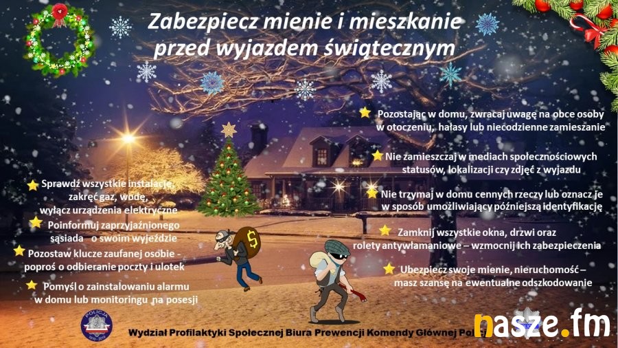 Święta Bożego Narodzenia za pasem. To czas wyjazdów, często nawet na kilka dni. Dla złodziei może to być okazja, by pozbawić nas dorobku. Policja przypomina i apeluje o odpowiednie zabezpieczenie naszego mieszkania czy domu.