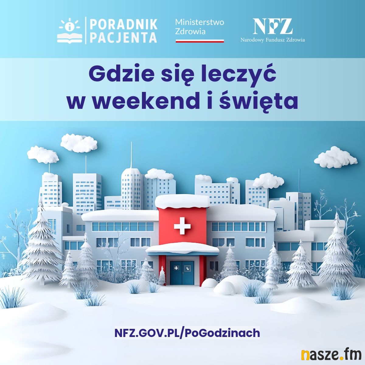 Adresy placówek, w których uzyskasz pomoc medyczną w ramach nocnej i świątecznej opieki zdrowotnej, znajdziesz tutaj lub pod numerem całodobowej bezpłatnej infolinii NFZ 800 190 590.
