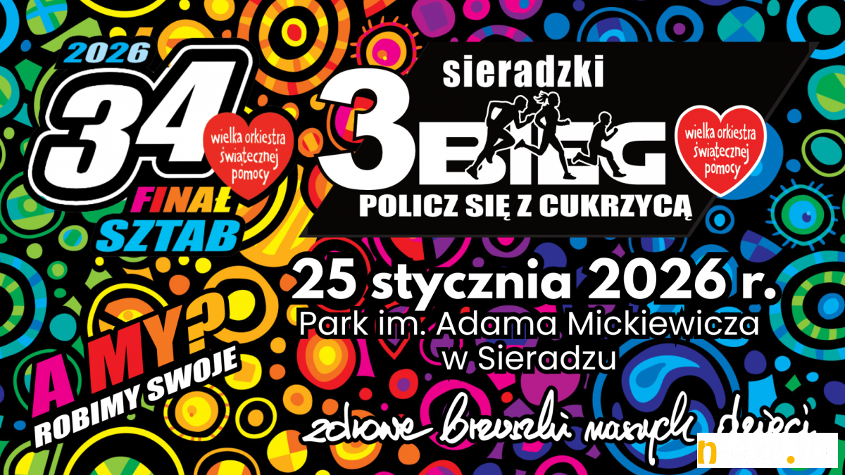 3. Sieradzki Bieg „Policz się z cukrzycą” odbędzie się w ramach 34. Finału Wielkiej Orkiestry Świątecznej Pomocy, który zagra 25 stycznia 2026 roku pod hasłem: