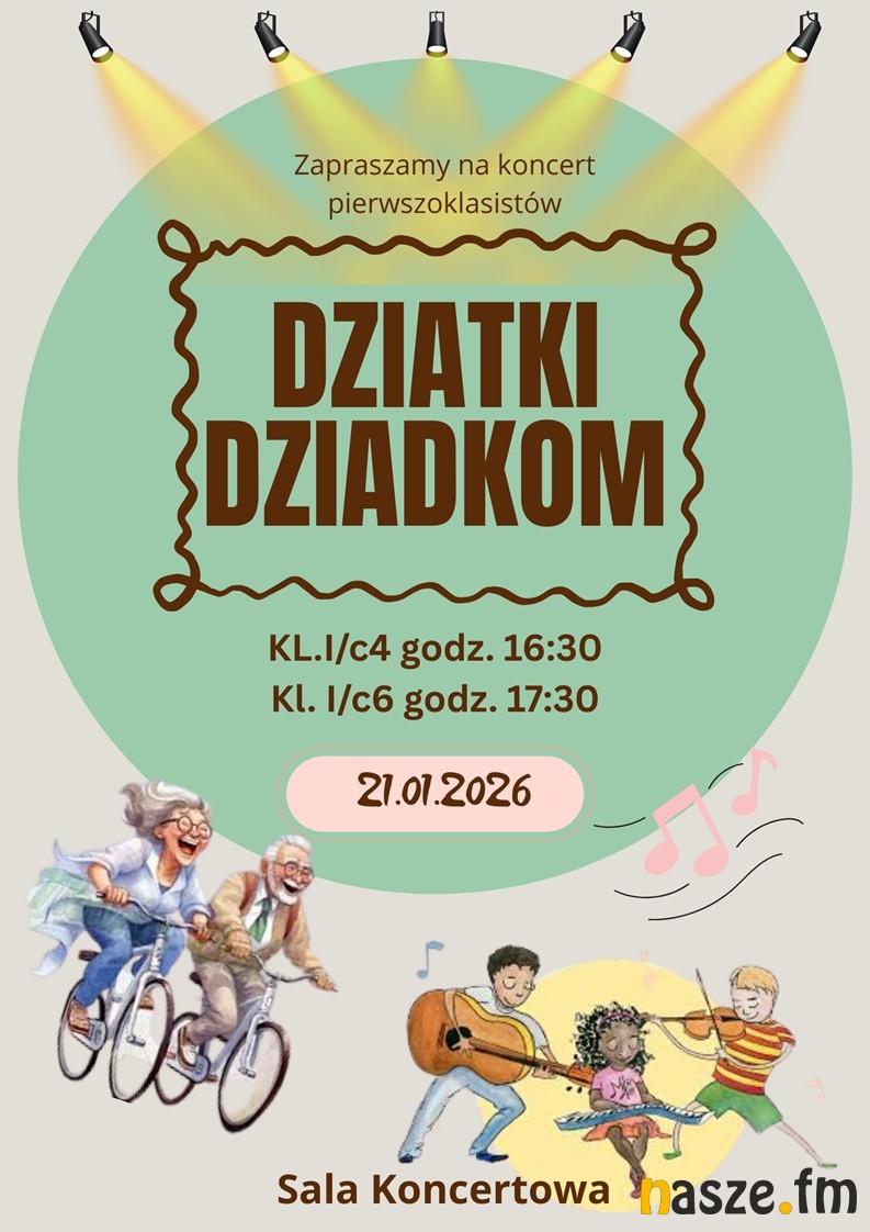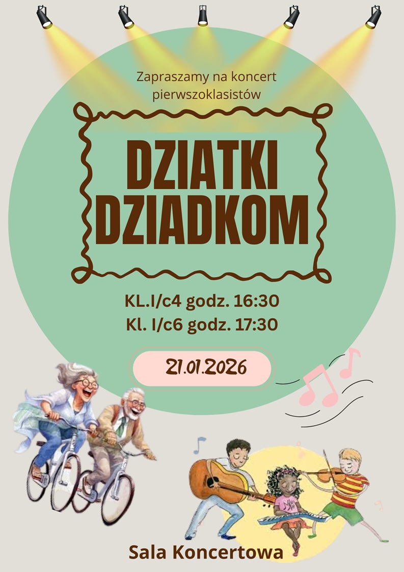 - Koncert "Dziatki Dziadkom", 21.01 w wykonaniu pierwszoklasistów, godz. 16:30 i 17:30 / Sala Koncertowa szkoły