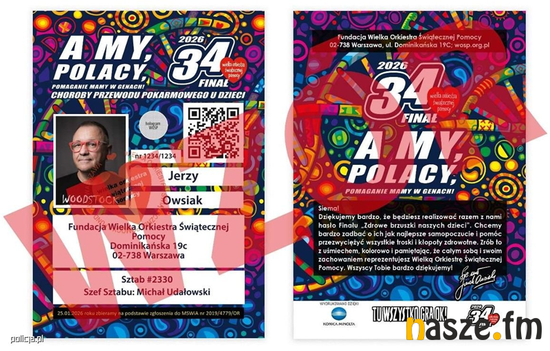 Nieodzownym atrybutem wolontariuszy są wszystkim doskonale znane "serduszkowe" naklejki. Jeśli zaistnieje podejrzenie, że ktoś podszywa się pod wolontariusza WOŚP i posługuje się podrobionym identyfikatorem lub podejrzanie wyglądającą puszką, należy skontaktować się z Policją lub Strażą Miejską / Gminną.