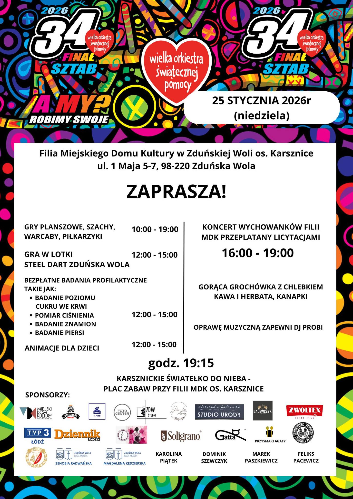 W najbliższą niedzielę, 25 stycznia, odbędzie się 34. Finał Wielkiej Orkiestry Świątecznej Pomocy. W tym roku celem zbiórki jest wsparcie diagnostyki i leczenia chorób przewodu pokarmowego u dzieci. Dla mieszkańców Zduńskiej Woli tego dnia przygotowano sporo atrakcji i wydarzeń. Działo będzie się też w innych miejscowościach powiatu zduńskowolskiego.