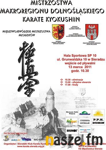 Pierwszy z turniejów przeznaczony jest dla 14-15 latków, a będą to Międzywojewódzkie Mistrzostwa Młodzików. Zawody odbędą się w ramach współzawodnictwa sportowego dzieci i młodzieży. Równolegle do tego turnieju będą rozgrywane Mistrzostwa Makroregionu Dolnośląskiego. W tych zawodach wezmą udział juniorzy oraz seniorzy. Kibice będą mogli zobaczyć formy kata, walki reżyserowane oraz walki w light i full kontakcie. Sieradzki Klub Karate Kyokushinkai, który jest gospodarzem zawodów, będzie w sumie reprezentowany przez ok. 20. zawodniczek i zawodników. Walki rozpoczną się w niedzielę już o 10.30, a uroczyste otwarcie zawodów planowane jest na 13.00. Wstęp oczywiście wolny!