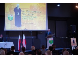 Patron Zduńskiej Woli św. Maksymilian Maria Kolbe otrzymał tytułu Honorowego Obywatela Gminy Teresin. Tytuł został mu nadany w 85. rocznicę jego aresztowania przez niemieckich okupantów w czasie II wojny światowej. W uroczystej sesji Rady Gminy Teresin brali udział przedstawiciele samorządu Zduńskiej Woli, gdzie święty się urodził.
