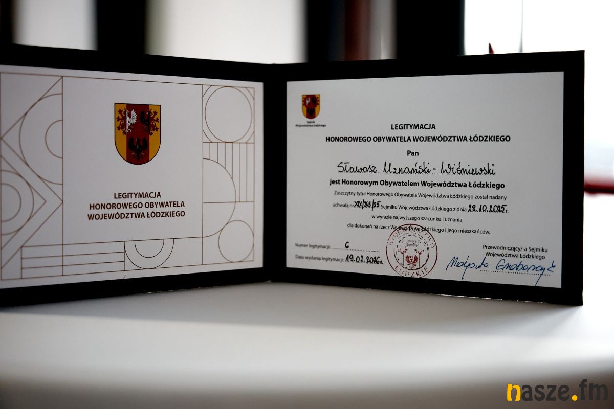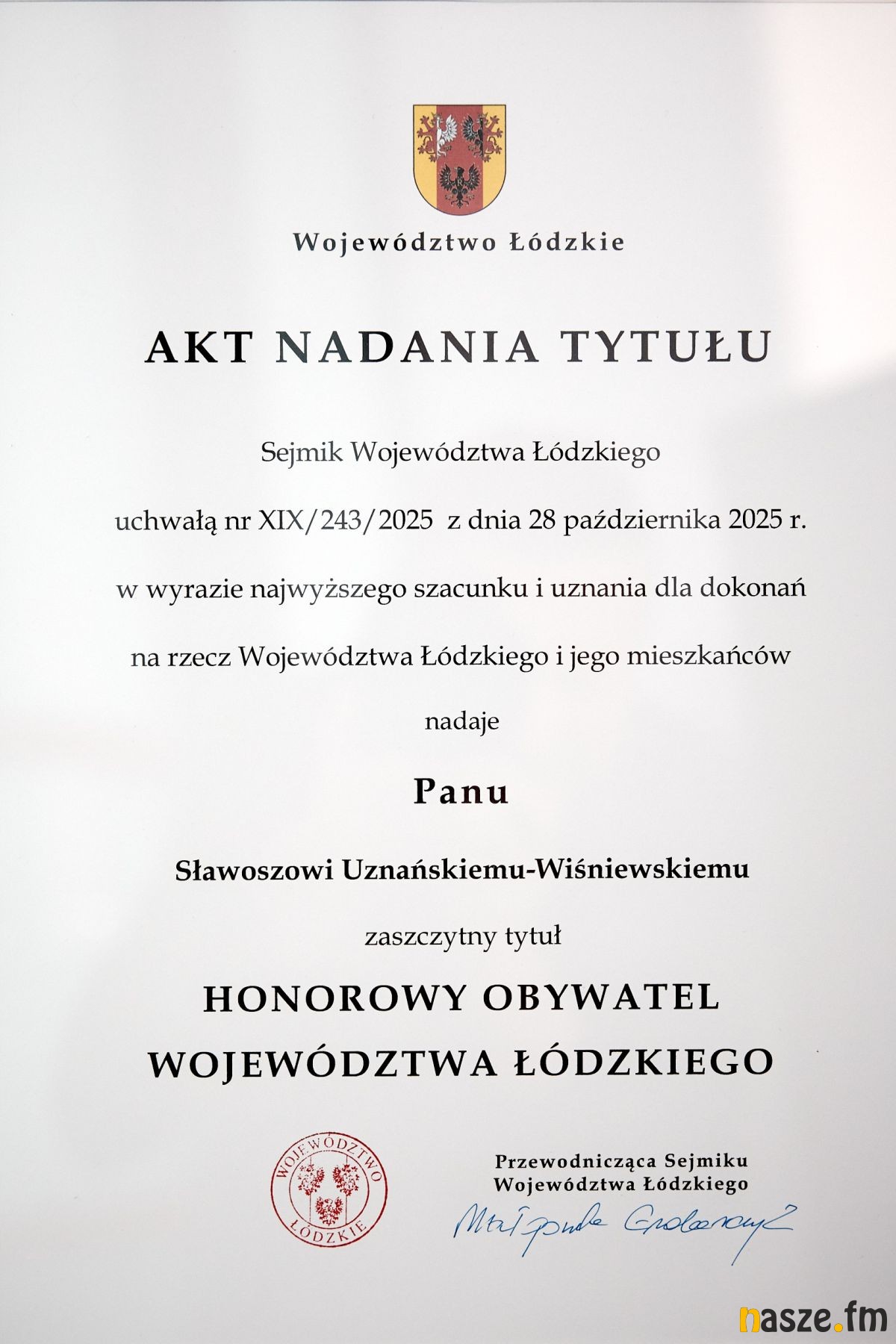 Sławosz Uznański-Wiśniewski Honorowym Obywatelem Województwa Łódzkiego