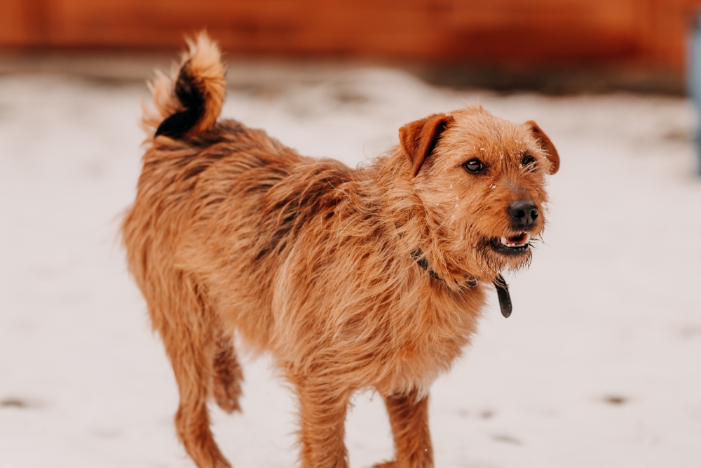 Karmel to średniej wielkości, urodzony w 2017 roku psiak. Do schroniska trafił w bardzo trudnym stanie - był wychudzony, zaniedbany i przestraszony. Jego historia nie jest znana, ale wszystko wskazuje na to, że nie miał łatwego życia. Dziś Karmel powoli uczy się, że człowiek nie musi oznaczać zagrożenia.
