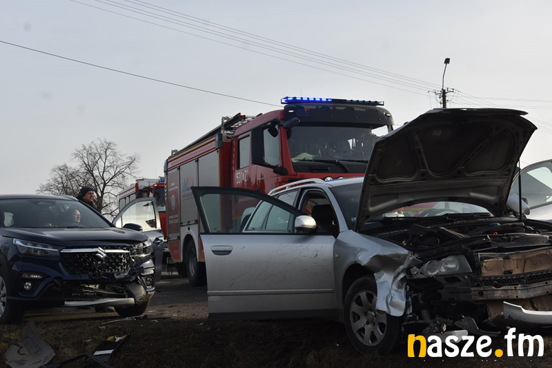 Jak informuje Komenda Powiatowa Policji w Sieradzu zawiniła 44-letnia kierująca autem marki Kia, która wyjeżdżając na drogę wojewódzką od strony Jezior nie ustąpiła pierwszeństwa przejazdu 31-letniemu kierowcy Audi, który jechał od strony Sieradza drogą 482. Kobieta przewoziła 19-letnią pasażerkę. Audi w wyniku zderzenia z Kia uderzyło w trzecie auto osobowe marki Suzuki, którym kierowała jadąca od strony Kłocka 54-latka.