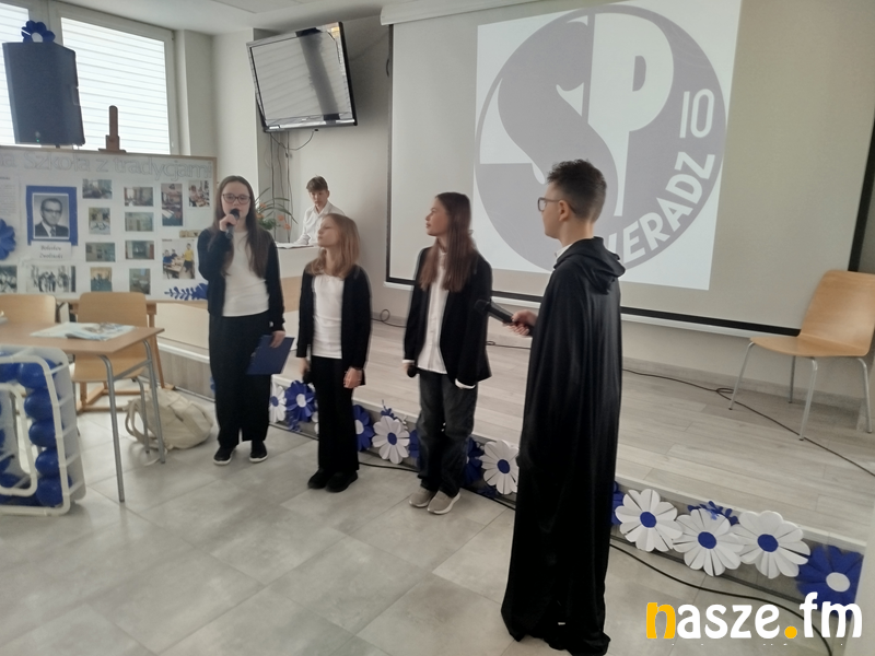 Na Święto Patrona w SP10 był dziś specjalny spacer z uczniami dla zaproszonych na obchody gości po najciekawszych szkolnych zakamarkach. W obchodach uczestniczyli m.in. Paweł Osiewała, prezydent Sieradza, a także Michał Pabich będący przewodniczącym Rady Miejskiej w Sieradzu i Agnieszka Kulawiecka, przewodnicząca Rady Rodziców w tej szkole.