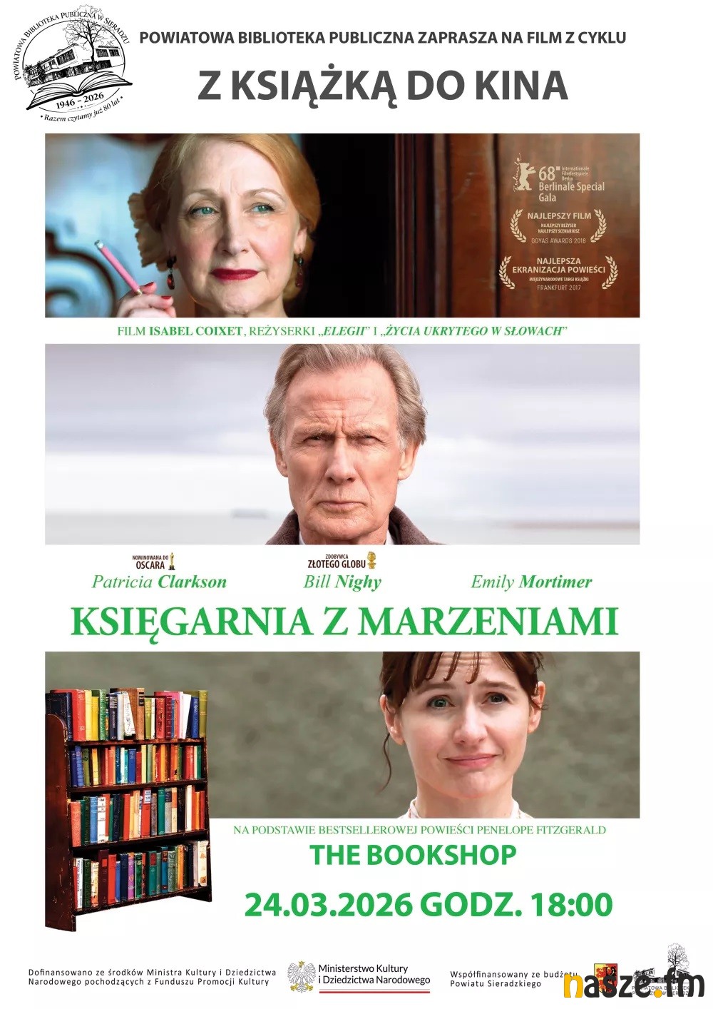Powiatowa Biblioteka Publiczna w Sieradzu zaprasza jutro na kolejny seans z cyklu "Z książką do kina". Tym razem będzie okazja, żeby obejrzeć film "Księgarnia z marzeniami", ekranizację bestsellerowej powieści Penelope Fitzgerald.