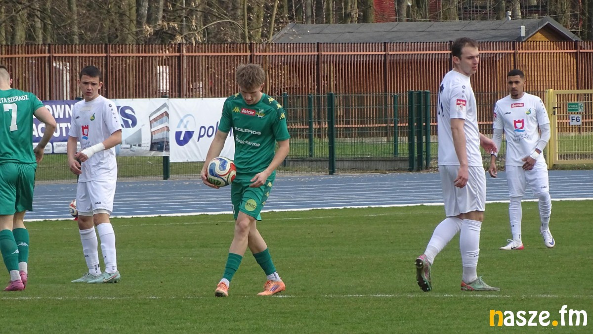 Pierwsza połowa to festiwal zmarnowanych okazji przez gospodarzy. Już w 3 minucie bliski szczęścia był Artur Sójka. Po dośrodkowaniu przez Szymona Pietrzaka uderzył groźnie z główki, ale brawurową interwencją popisał się bramkarz gości. Sieradzanie dyktowali warunki gry, często wchodzili w pole karne rywala, ale brakowało im zdecydowania w momencie, gdy trzeba było oddać strzał. Niedobrze funkcjonowała też obrona. W 10 minucie po uderzeniu głową bramkę zdobył zawodnik Świtu Łukasz Mościcki.
