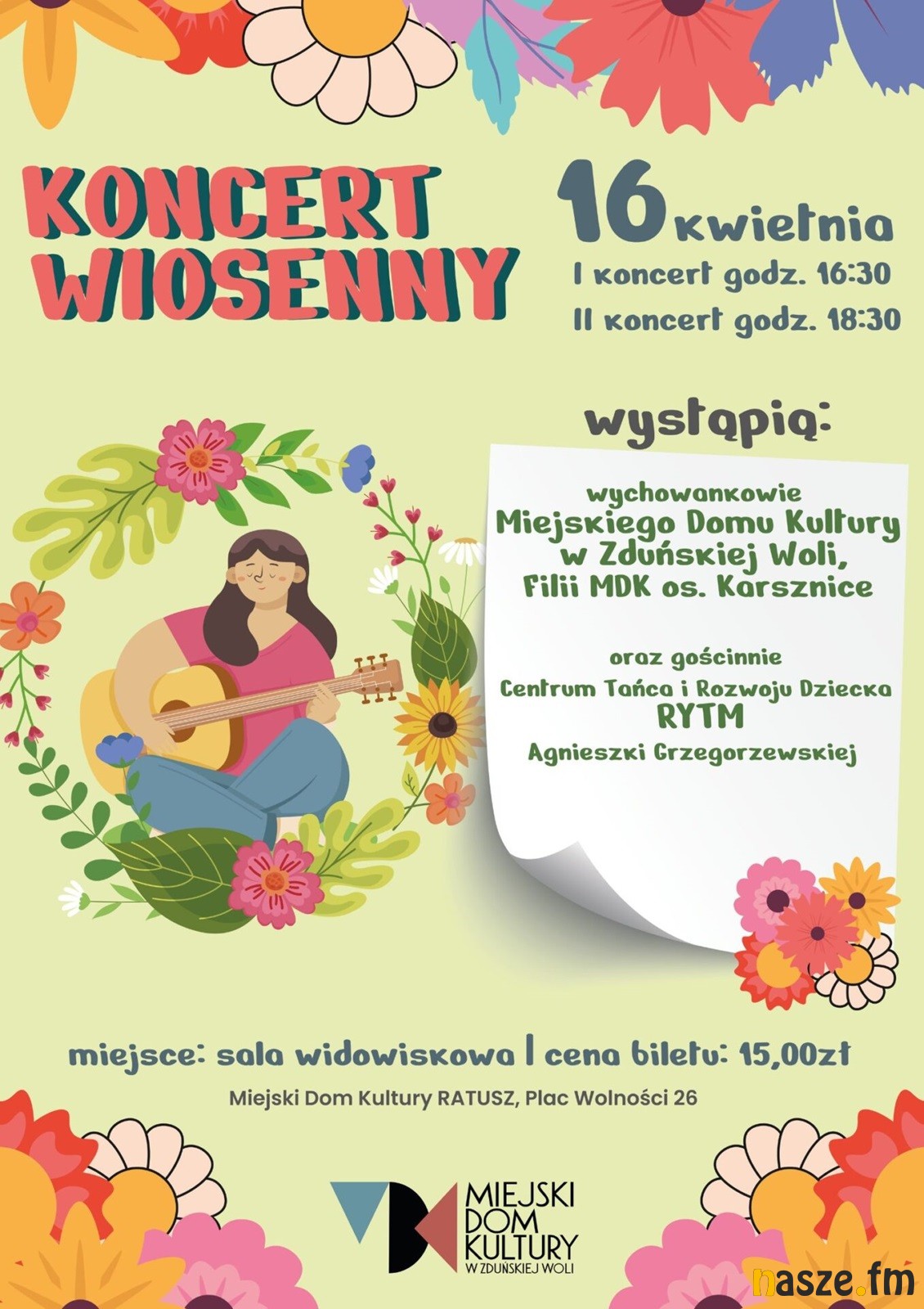 Miejski Dom Kultury Ratusz w Zduńskiej Woli zaprasza w najbliższy czwartek, 16 kwietnia, na Koncert Wiosenny. Tego dnia publiczność będzie mogła zobaczyć i usłyszeć różnorodny repertuar przygotowany przez uczestników różnorodnych zajęć.