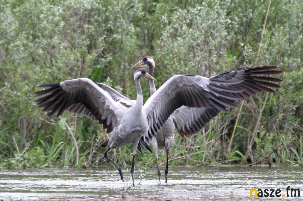 - Oczywiście żuraw nie jest ptakiem śpiewającym w rozumieniu systematycznym, ale dźwięk żurawia też wpisuje się w ten nadwodny klimat. Głos żurawia nazywa się klangorem, razem z całym widokiem, który tworzą stada żurawi, które zlatują się na jakiś obszar podmokły, żeby tam spędzić noc, robi to niesamowite wrażenie. Wieczorne zloty żurawi to chyba jeden z najbardziej niesamowitych spektakli przyrody. Wszyscy te dźwięki znają,bo po pierwsze w ostatnich czasach bardzo łatwo je usłyszeć w naszych okolicach, bo żuraw od kilkudziesięciu lat jest w wyraźnej ekspansji, ale też głosy żurawi były powszechnie wykorzystywane w wielu filmach - opowiadał nasz ekspert.