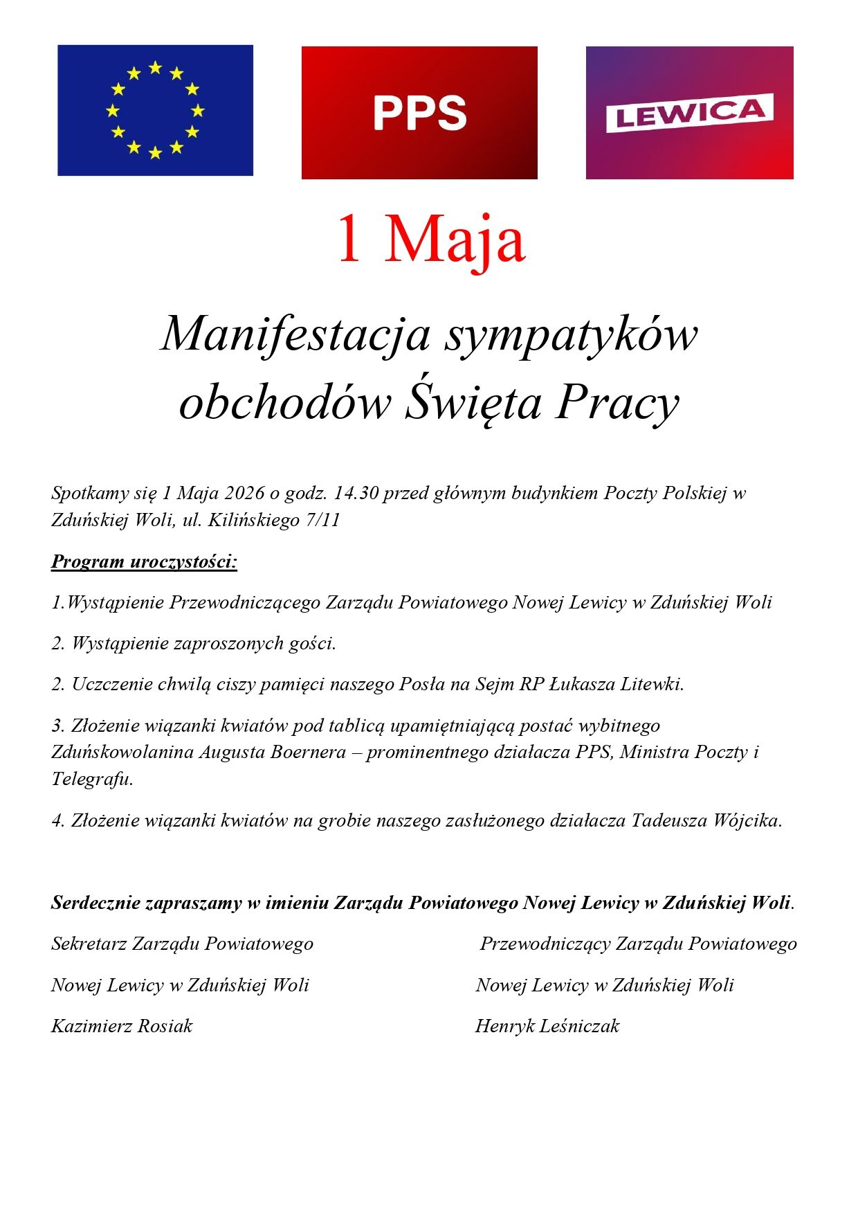 Manifestacja sympatyków obchodów Święta Pracy w Zduńskiej Woli