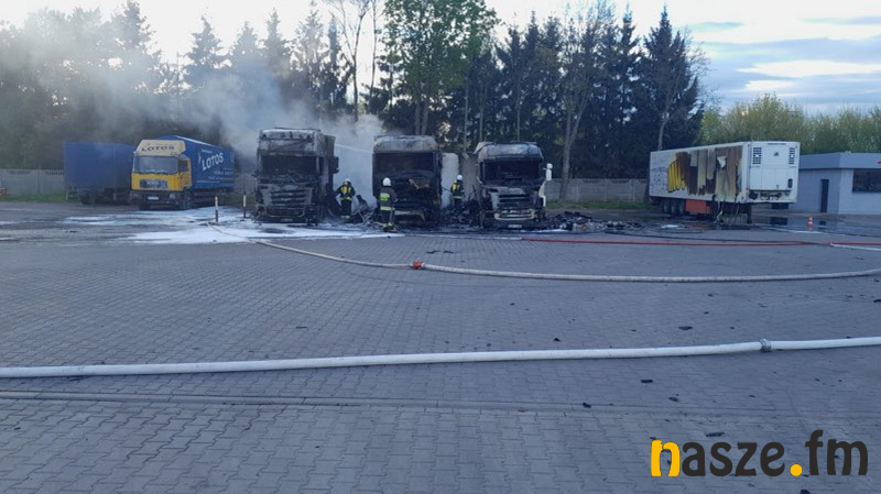Dziś po południu (ok. godz. 18) doszło do pożaru trzech samochodów ciężarowych zaparkowanych na terenie bazy PKS przy ul. Wojska Polskiego w Sieradzu. Na miejscu interweniowali strażacy i policjanci.