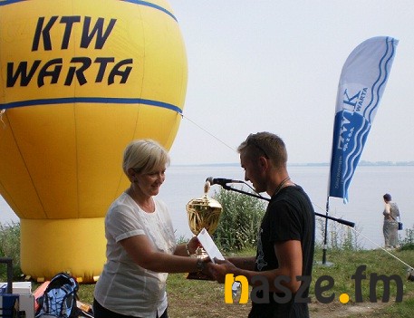 Kolejne regaty nad Jeziorskiem zakończone. Błękitną Wstęgę zalewu zdobył Damian Kazimierczak(na zdjęciu odbiera puchar z rąk Doroty Ryl- wicemarszałek woj. łódzkiego), który okazał się lepszy od...ojca. Takich rodzinnych pojedynków w czasie ragat było więcej.