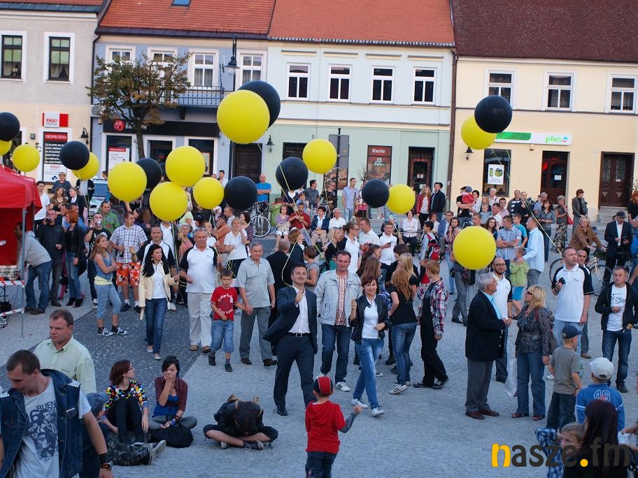 Drugą część niedzieli na sieradzkim Rynku zdominowało kolejne spotkanie Naszego Radia ze słuchaczami w ramach 15 urodzin rozgłośni. Załoga Naszego Radia wypuściła w niebo specjalne przesłanie, pozdrowienia. Był to specyficzny happening polegający na tym ,że specjalne kartki z informacją od nas i naszych słuchaczy za pomocą wielkich balonów napełnionych helem powędrowały w powietrze. Podobne akcje spotykały się z odzewem z Francji czy Włoch. Na zwrotną informację przyjdzie nam pewnie poczekać. Tymczasem finałowym elementem happeningu balonowego był koncert zaprzyjaźnionej z naszą rogłośnią grupy NieBoNie, który przyciągnął pod scenę tłumy sieradzan.