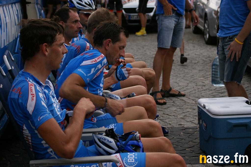 Bo on miał wprowadzić peleton, a że on sam nie może wziął Cezarego T na bagażnik i mu się krawat w łańcuch wkręcił. Obecnie sytuacja jest opanowana, obecnie cały czas jadą i mają finiszować dzisiaj.