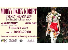 Centrum Informacji Kulturalnej w Sieradzu zaprasza 8 marca na wspólne spędzenia Dnia Kobiet. W programie m..in. prezentacja trendów na wiosnę 2019, pokaz wiosennych stylizacji czy wymiana ubrań. Na finał potańcówka- retro party.