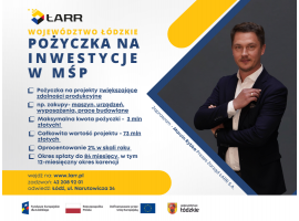 Już od połowy czerwca będziecie Państwo mogli skorzystać z "Pożyczki na Inwestycje w MŚP". Łódzka Agencja Rozwoju Regionalnego S.A. wygrała przetarg ogłoszony przez BGK S.A. w ramach programu regionalnego Fundusze Europejskie dla łódzkiego na lata 2021-2027. Do rozdysponowania mamy aż 73 mln zł – mówi Marcin Rybka Prezes Zarządu ŁARR S.A.