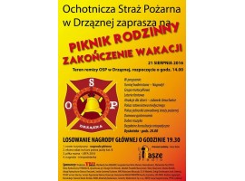 Ochotnicza Straż Pożarna w Drząznej (gm. Wróblew) zaprasza na piknik rodzinny kończący tegoroczne wakacje. Organizatorzy zapewniają, że atrakcji nie zabraknie.