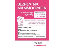 6 maja odbędą się bezpłatne badania mammograficzne. W godzinach 9:00-12:30 badania odbędą się przy Szkole Podstawowej w Izabelowie, a w godzinach 13:30-16:00 przy Zespole Gimnazjum, Szkoły Podstawowej i Przedszkola w Czechach.