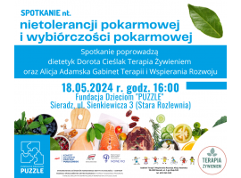 W najbliższą sobotę Fundacja Dzieciom Puzzle zaprasza rodziców oraz opiekunów dzieci na spotkanie nt. nietolerancji pokarmowej i wybiórczości pokarmowej
