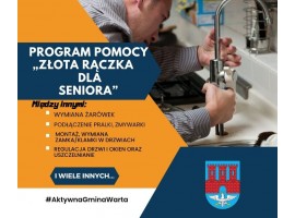 Dziś na terenie Gminy Warta rusza Program Pomocy „Złota Rączka dla Seniora", polegający na zapewnieniu nieodpłatnej pomocy seniorom w drobnych domowych naprawach i pracach na zamieszkiwanej posesji, których nie są w stanie samodzielnie zrealizować z uwagi na wiek i stan zdrowia.
