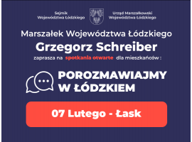Porozmawiajmy w Łódzkiem już w najbliższą środę 7 lutego w powiecie łaskim. Na spotkanie z mieszkańcami zaprasza Grzegorz Schreiber - marszałek Województwa Łódzkiego.