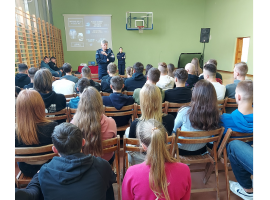 Naczelnik Wydziału Doboru Komendy Wojewódzkiej Policji w Łodzi młodszy inspektor Rafał Mrozowski spotkał się uczniami klas mundurowych Powiatowego Zespołu Szkół w Błaszkach i Warcie. Prelekcje dotyczyły procedury doboru do służby w Policji i etapów rekrutacji. Młodym ludziom, którzy stają przed wyborem swej drogi zawodowej, przedstawiona została specyfika służby w policyjnym mundurze.