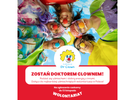 Fundacja Dr Clown poszukuje wolontariuszy. Osoby, które dołączą do zespołu będą realizować program "Terapii śmiechem", rozdawać uśmiechy oraz dawać radość tym, którzy najbardziej tego potrzebują.