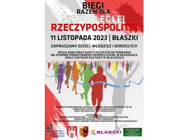 Urząd miejski w Błaszkach (pow. sieradzki) zaprasza na biegi uliczne "Razem dla Niepodległej Rzeczypospolitej", które odbędą się 11 listopada 2023 r. w Błaszkach. Wydarzenie organizują Powiatowy Zespół Szkół w Błaszkach i Centrum Kultury w Błaszkach.