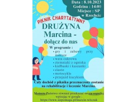 W niedzielę, 8 października, odbędzie się charytatywny piknik, z którego cały dochód przeznaczony zostanie na leczenie i rehabilitację Marcina Witczaka. Piknik odbędzie się w na terenie Szkoły Podstawowej w Rzechcie.