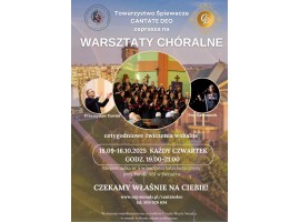 Chór "Cantate Deo" z Sieradza, obchodzący w tym roku jubileusz 40-lecia działalności, zaprasza na kolejne ciekawe wydarzenia muzyczne. Już od dziś rozpoczną się warsztaty chóralne, które odbywać się będą w kolejne czwartki, aż do 16 października. Warsztaty skierowane jest do mieszkańców Sieradza i okolic, osób lubiących śpiewać i znajdujących upodobanie w harmonii dźwięków.