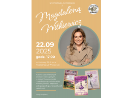 22 września w Gminnej Bibliotece Publicznej we Wróblewie odbędzie się spotkanie autorskie, którego gościem będzie Magdalena Witkiewicz. Autorka bestsellerowych powieści, które pokochało miliony czytelników.