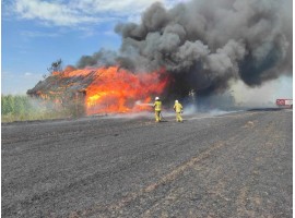 Strażacy gasili wczoraj pożar rżyska oraz drewnianej stodoły w miejscowości Marcelin (gm. Szadek). Ogniem objęte były 3 ha terenu. Budynek spłonął doszczętnie.
