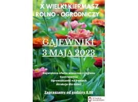 W środę 3 maja wato wybrać się do Stajni Gajewniki, gdzie już o godz. 8:00 rozpocznie się X Wielki Kiermasz Ogrodniczy. W programie atrakcje dla całych rodzin.