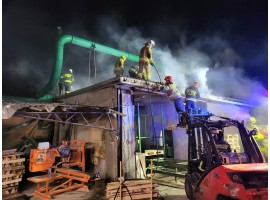 Nocne działania straży pożarnej w miejscowości Żuraw w gminie Brąszewice (pow. sieradzki). Nie ma osób poszkodowanych, ale są straty materialne. Płonęła tam hala produkcyjna drewnianych palet.