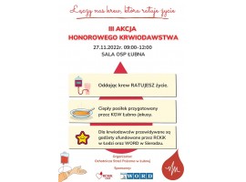 W regionie będą kolejne zbiórki krwi od honorowych dawców. Na trzecią już taką swoją akcję zaprasza Ochotnicza Straż Pożarna Łubna - Jakusy w gminie Błaszki.
