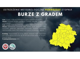 Instytut Meteorologii i Gospodarki Wodnej wydał ostrzeżenie meteorologiczne I stopnia dotyczące burz z gradem dla całego województwa łódzkiego. Mogą one wystąpić dziś po południu i w nocy z niedzieli na poniedziałek.