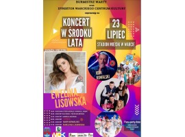 Na takie letnie wydarzenie zapraszają Burmistrz Warty oraz Dyrektor Warckiego Centrum Kultury. Koncerty odbędą się 23 lipca. Na scenie wystąpią m.in. Igor Kowalski oraz zespół Verdis. Gwiazdą wieczoru będzie Ewelina Lisowska. Będzie też rodzinna strefa kreacji i animacji "Bajka". Nie zabraknie atrakcji dla dzieci i dorosłych.