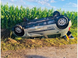 Wypadek w Branicy w gminie Zapolice. Dziś rano dachował tam samochód osobowy. Kobieta, która nim kierowała trafiła do szpitala.