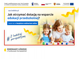 Lokalny Punkt Informacyjny Funduszy Europejskich z Łowicza organizuje w drugiej połowie maja webinarium, którego tematem będzie nowy konkurs ogłoszony przez Urząd Marszałkowski Województwa Łódzkiego. Jego stawką są dotacje na wsparcie edukacji przedszkolnej. Przedszkola to bardzo ważny etap edukacji dzieci. Dzięki unijnym dotacjom powstają w nich nowe miejsca nauki i zabawy dla najmłodszych.