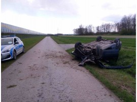 Kierowca z dwoma promilami wpadł do rowu i dachował