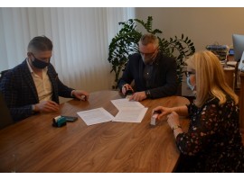 Burmistrz Błaszek oraz skarbnik podpisali umowę na ułożenie nakładki bitumicznej na drogach gminnych. To prawie 11 km odcinków w kilkudziesięciu miejscach na terenie gminy.