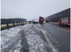 Utrudnienia w ruchu na drodze ekspresowej S8 w kierunku na Łódź. Pomiędzy węzłami Zduńska Wola Wschód a Łask samochód ciężarowy uderzył w bariery. Ruch odbywa się jednym pasem.