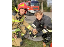 Pies wpadł do studzienki, pomogli strażacy