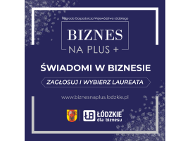 Wielkimi krokami zbliżs się rozstrzygnięcie konkursu Nagroda Gospodarcza Województwa Łódzkiego "Biznes na PLUS", która przyznawana jest podmiotom prowadzącym działalność na terenie województwa łódzkiego. Organizatorzy zachęcają do oddawania głosów w kategorii "Świadomi w Biznesie" - Nagroda Publiczności.